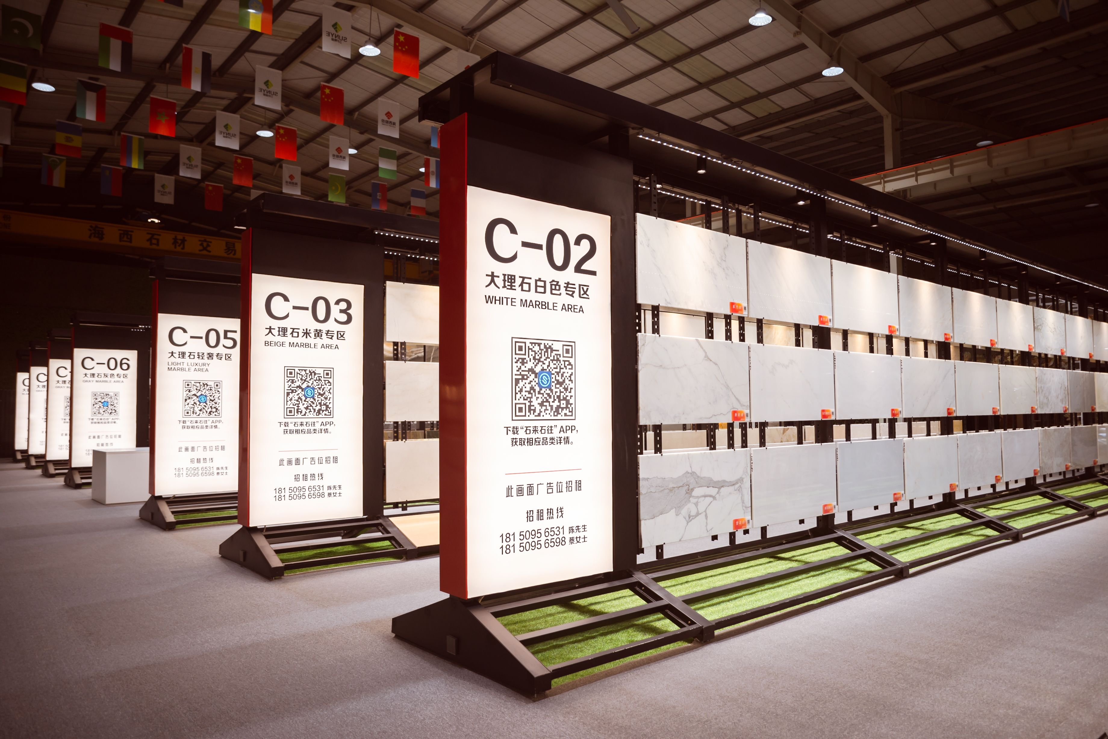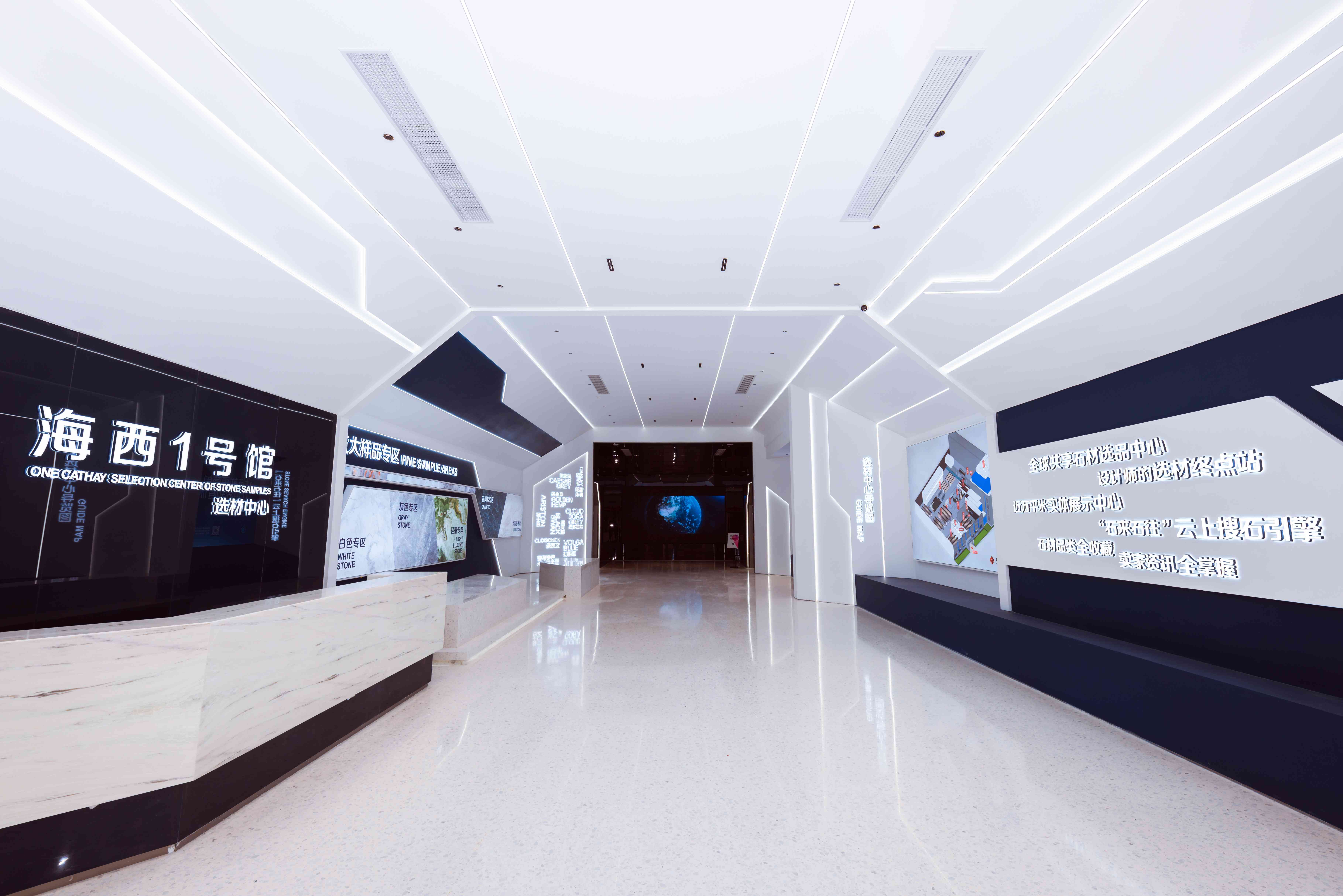 “海西1号馆”以“开放选材,行业共享”为主旨,链接石企与建筑行业、设计师等石材应用终端,致力成为“全球设计师选材终点站”。选材中心目前拥有近万平展示空间,一期可展示1500块样品石,规划有花岗岩、莱姆石、白石、灰石、轻奢石等五大样品专区。