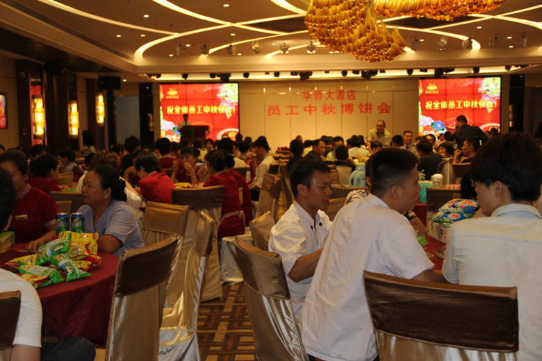 华酒员工中秋博饼会作者: 来源:华酒行政办 时间:2014-8-11 11:00:07 丹桂飘香,秋菊逸彩的中秋佳节。中秋,一个温馨、团圆的美好日子;一个欢乐、和谐的美好日子;一个充满诗情画意、处处美酒飘香的美好日子!8月9日“中秋节”,在值此佳节之际,为丰富员工的精神物质生活,增强员工的凝聚力和归属感,华酒根据管理公司领导的工作部署举办了员工中秋“博饼会”,创建和谐的“家庭氛围”! 在博饼活动开始前,酒店执行总经理转达了公司领导的祝愿并向奋战在各个岗位的伙伴以及默默支持我们的广大家属致以节日最诚挚的祝贺和最真挚的谢意!并向所有员工致以节日的问候!14:40随着一声博饼会开始,33个博饼瓷碗里的骰子同时响起,全场骰子声叮叮当当,一秀、二举……榜眼、探花、状元相继博出,现场的气氛一次次推向高潮,整个会场成了一片欢乐的海洋,桌上的礼品悉数被员工收入囊中,员工们的欢声笑语,其乐融融;华酒员工中秋博饼会在1个多小时的的热闹、愉快中结束。博饼其实博的不仅是“饼”,博的更是个好彩头、是希望,是对美好生活的追求。有博就有收获,在金秋这个收获的季节,相信华酒可以收获更大的成功!